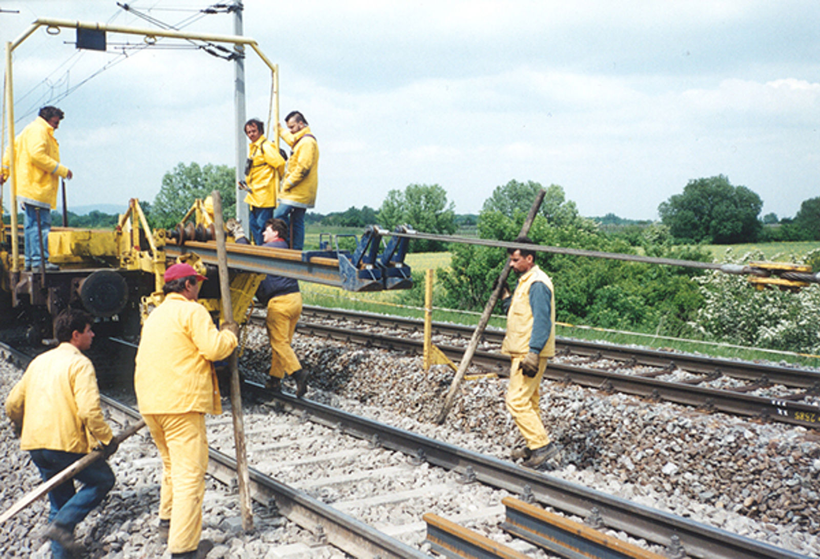 Tidligere ble de nye skinnene på 40 m mellomsveist ute i sporet med en mobil sveisemaskin til 80 eller 120 m. Nå fraktes skinnene ut med langskinnetog i lengder på opptil 400 m.