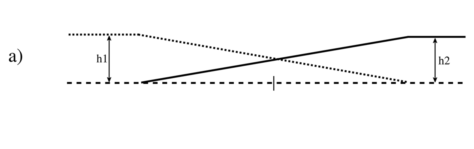 Det er ønskelig å beregne parameterne Lx og Ly med grunnlag i overhøydene i sirkelkurvene R1 og R2. Den blå stiplede linjen er forlengelse av overgangskurve L12 til nullinje. Gjennom parameterne h2, h1 og L12 er gradienten kjent. Forlengelse av gradienten til overgangskurven til nullpunktet beregnes, se figur på side 5: